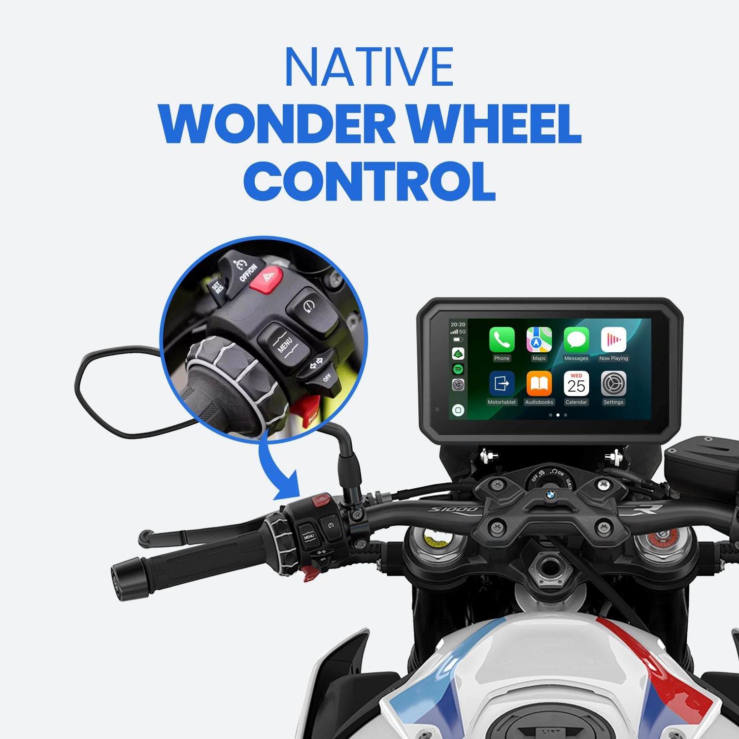 The GS Goods Motor CarPlay is built to work seamlessly with your BMW Wonder Wheel. This lets you: